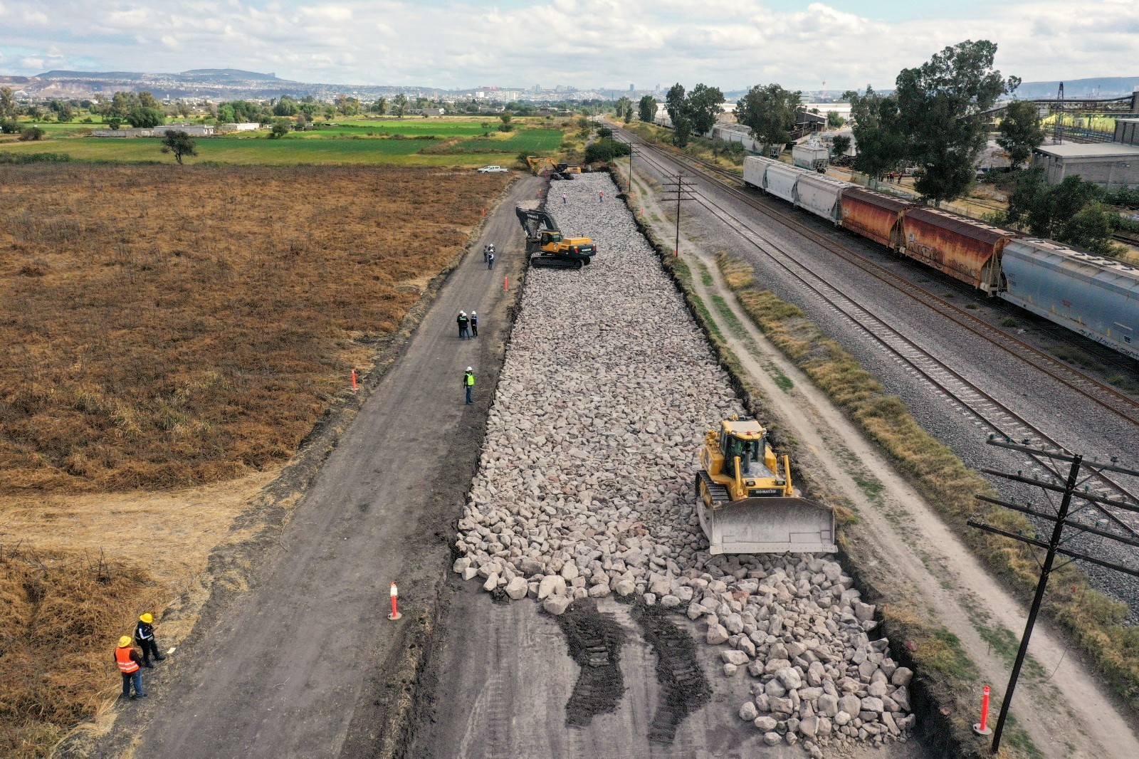 Actualmente se lleva a cabo el desmantelamiento de la vía ferroviaria existente, así como el almacenamiento de toneladas de acero de refuerzo y presfuerzo en el patio de maniobras.