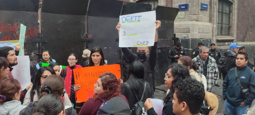 “Enfrentamos salarios insuficientes e irregularidad crónica en los pagos, lo cual atenta contra nuestra dignidad. Hemos agotado las instancias administrativas, por lo que apelamos a la sensibilidad de la Presidenta y su compromiso con la justicia, por ello, exigimos basificación inmediata, asignación de plazas de base como docentes de educación media superior, implementación de un pago quincenal mediante sueldos y salarios, con un ajuste justo acorde con nuestra labor especializada y acceso pleno a prestaciones, así como otorgamiento de todas las prestaciones de ley y el reconocimiento de nuestra antigüedad laboral ininterrumpida”.