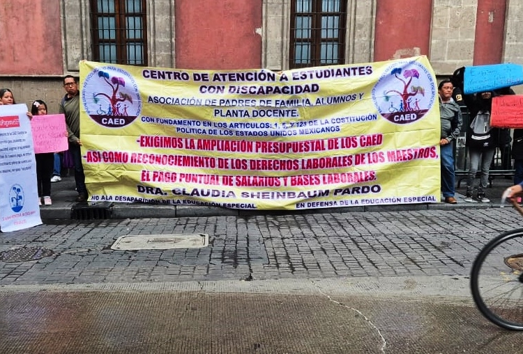 Personal docente de los 289 Centros de Atención para Estudiantes con Discapacidad (CAED) del país denunciaron frente a Palacio Nacional que tienen tres meses sin cobrar su salario, situación que se ha repetido durante más de una década, a pesar de que llevan a cabo su función educativa en condiciones laborales irregulares al no contar con un contrato ni prestaciones sociales, por lo que exigieron su pago inmediato y que sus demandas sean atendidas por la presidenta Claudia Sheinbaum Pardo y la SEP.