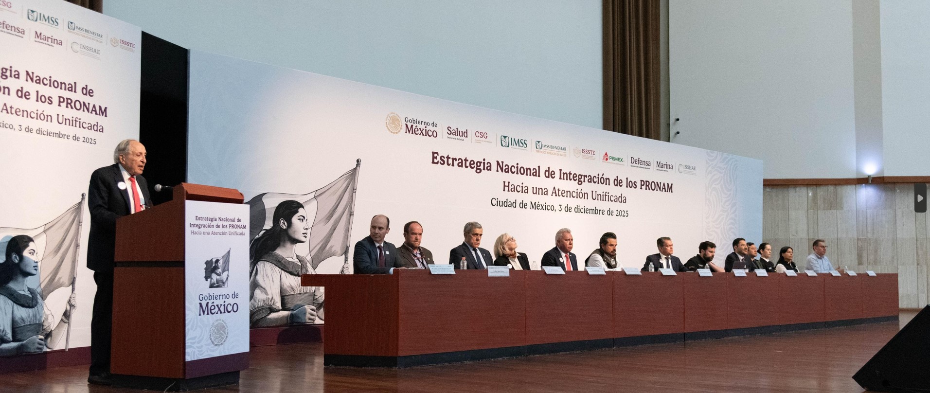 Al acto de lanzamiento de la estrategia nacional de Integración de los Pronam, asistieron además del titular de Salud, Dr. David Kershenobich; el director del IMSS, Zoe Robledo; el director del ISSSTE, Martí Batres; el titular del IMSS-Bienestar, Alejandro Svarch y el presidente del SNTSA y FSTSE, Marco Antonio García Ayala, entre otras autoridades.