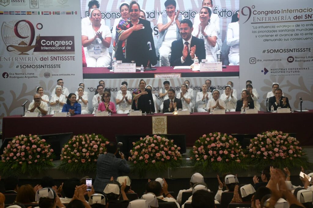 La doctora Norma Liliana Rodríguez Argüelles, Presidenta del CEN del SNTISSSTE, manifestó lo anterior ante más de 500 enfermeras y enfermeros del Instituto de manera presencial en el Teatro Ciudadela y 536 visitas en la plataforma de YouTube, durante la inauguración del 9º Congreso Internacional de Enfermería del SNTISSSTE “La influencia estratégica de la enfermería en las prioridades sanitarias mundiales: prevenir y contener el avance de la enfermedad atenuando sus consecuencias”.